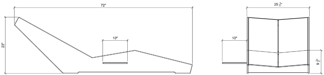 L 72” W 25-1/4” H 23” SH 9-1/2” WT 130lbs